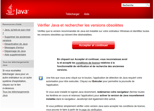 Quand vous êtes sur cette page, il vous suffit de cliquer sur « Vérifier la version de Java » :